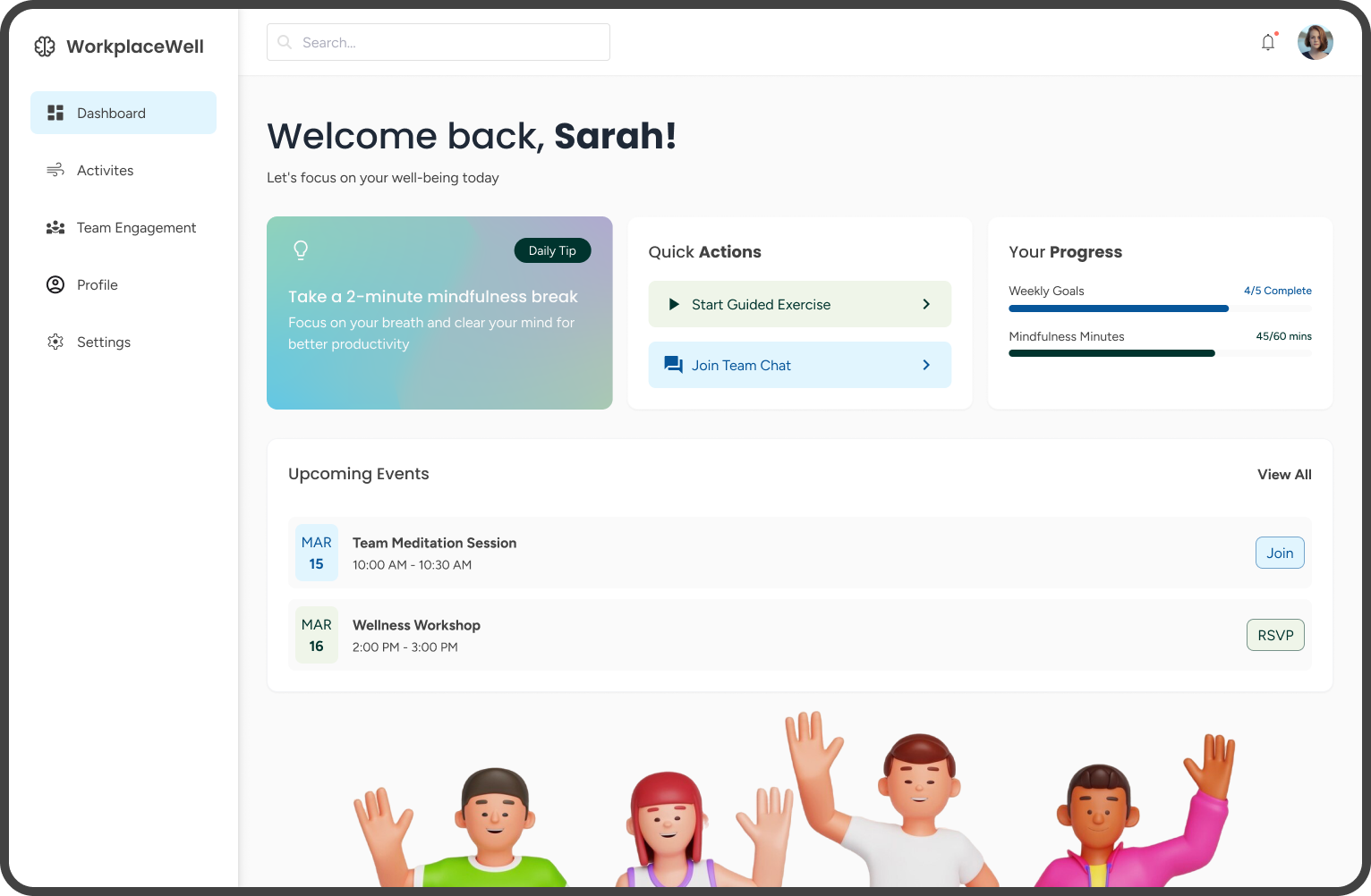 | Microsoft Teams | Great for collaboration | No embedded wellness tools | Embed wellness activities inside daily workflows |
